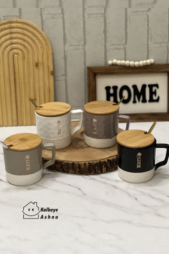 ماگ سرامیکی درب بامبو قاشق دار