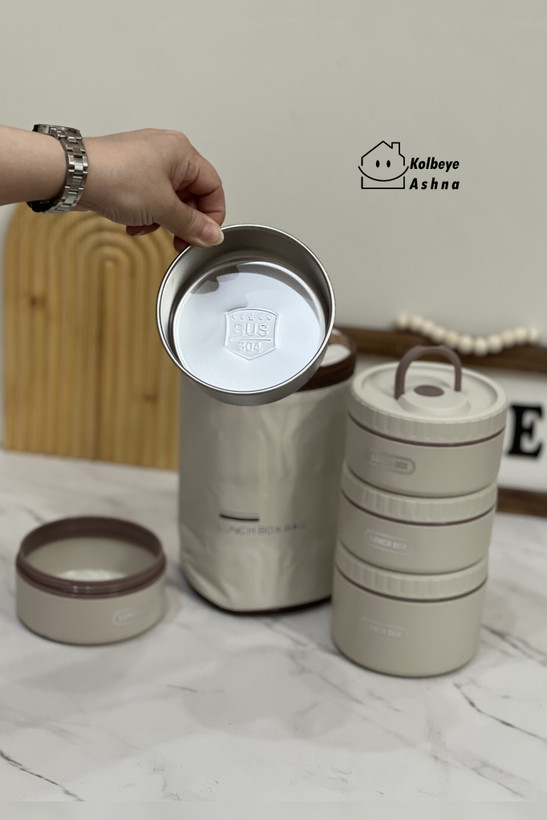 این مجموعهی جذاب شامل سه ظرف غذا با جدارهی داخلی استیل ضدزنگ هست که طعم و تازگی غذا رو تا ساعتها حفظ میکنه. هر ظرف دارای درب محکم و ضدنشت هست، پس خیالت از بابت ریختن خورشت یا سوپ داخل کیف راحت باشه.