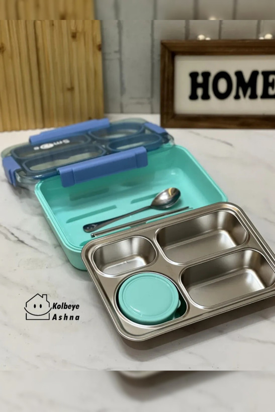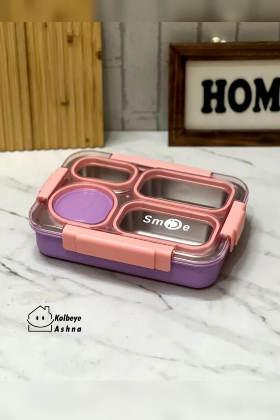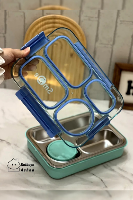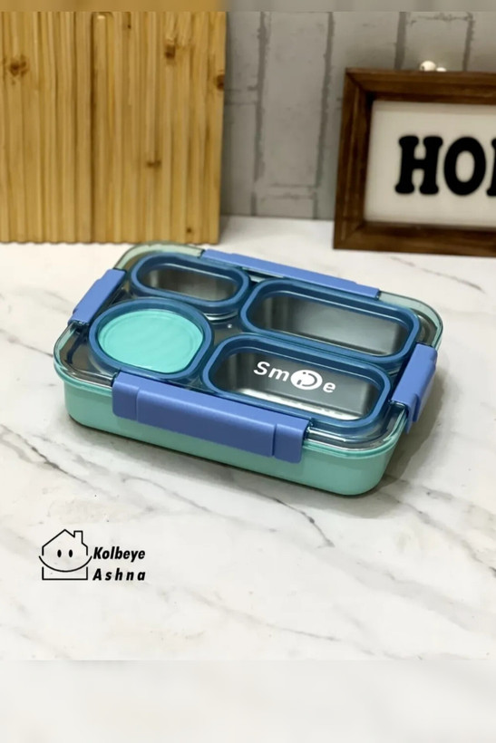 ظرف غذا (لانچباکس) واشردار کاسه دار چهار قسمتی برند اسمایل بدون نشتی