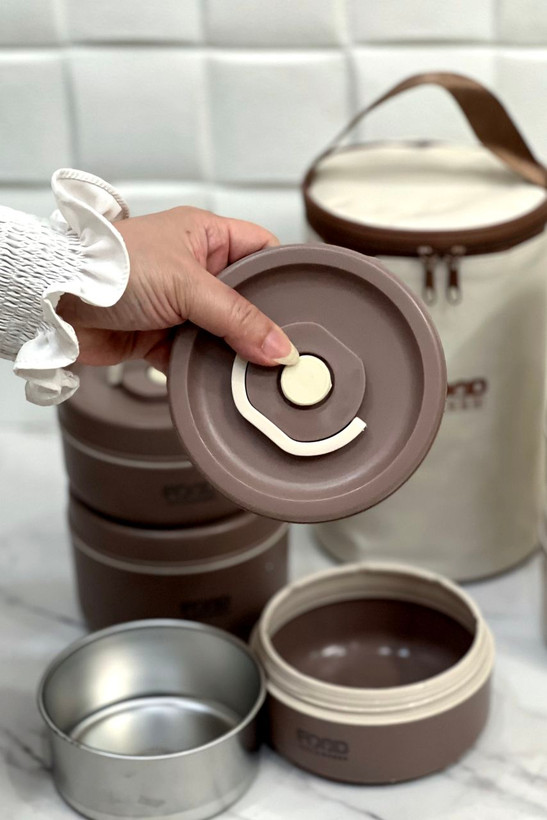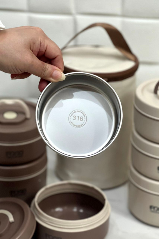 ظرف غذا سه تایی هنراه کیف عایق استیل ۳۱۶