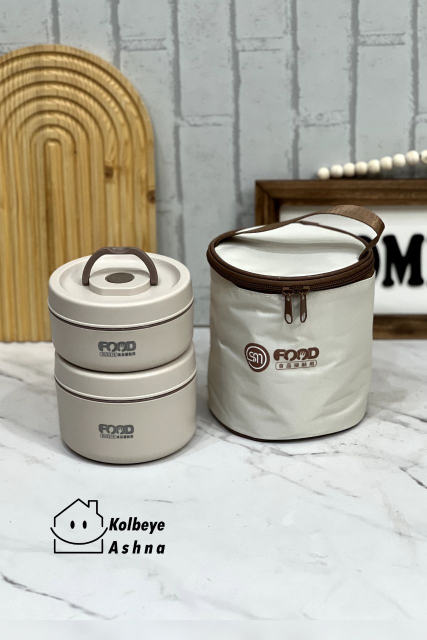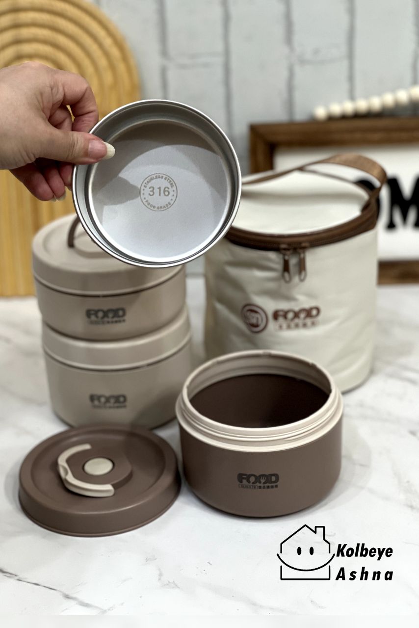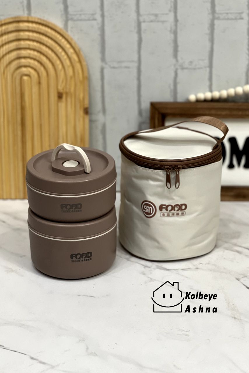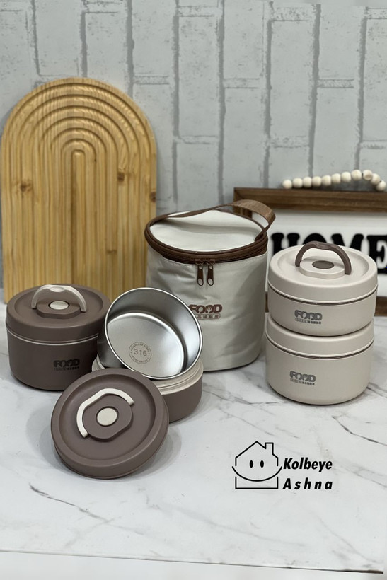 ظرف غذا ( لانچباکس ) ست لانچباکس و لانچبگ داخل استیل دوقسمتی استیل ۳۱۶