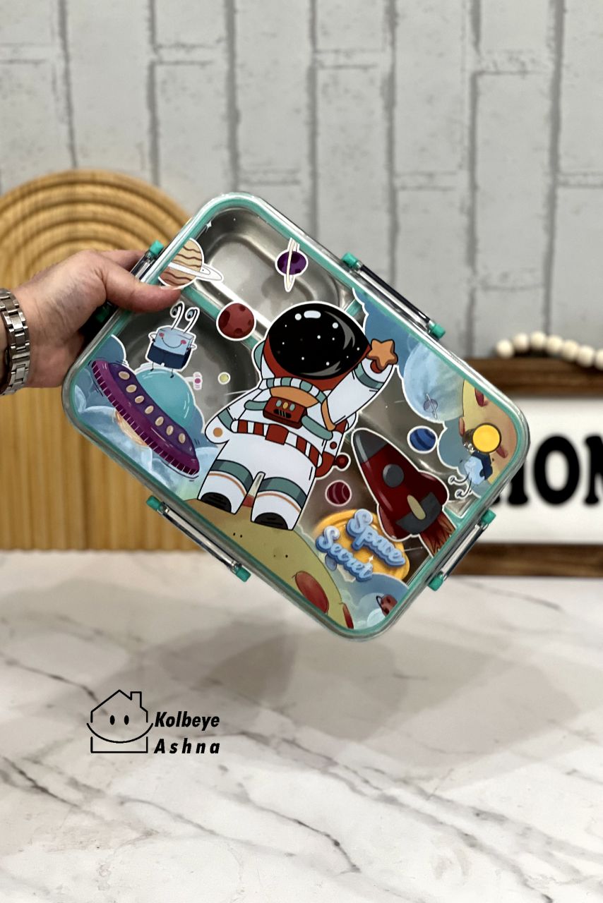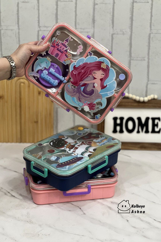 ظرف غذا لانچباکس واشردار چهار قسمتی کاسه دار کارتونی