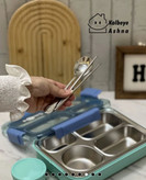 ظرف غذا واشردار چهارقسمتی کاسه دار برند اسمایل رنگ آبی فیروزه ای