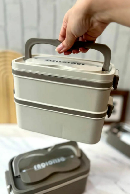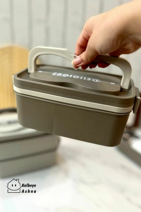 ظرف غذا لانچ باکس دوطبقه داخل استیل سه قسمتی