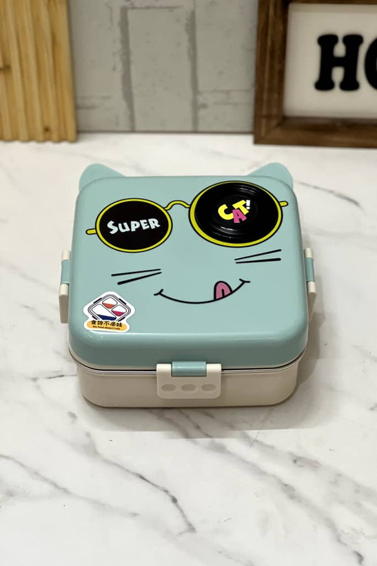 ظرف غذا لانچ باکس دوطبقه واشردار کودک گربه و جوجه داخل استیل کاسه دار بدون نشتی