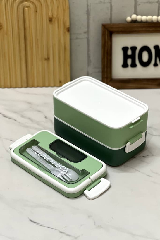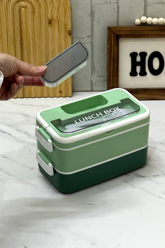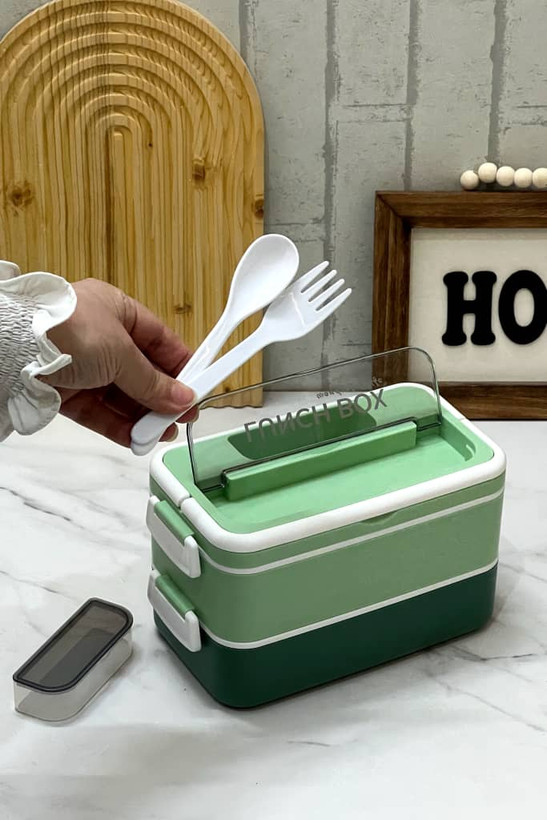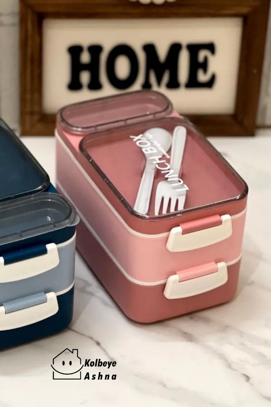 ظرف غذا لانچ باکس دوطبقه دسته دار ماکروویوی بدون نشتی