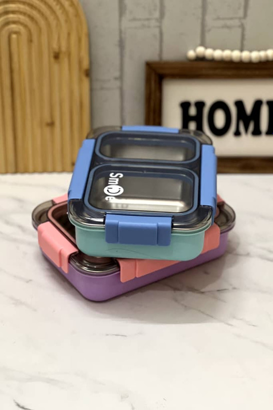 ظرف غذا لانچ باکس واشردار دو قسمتی داخل استیل برند بنتو قاشق و چاپستیک استیل