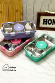 ظرف غذا لانچ باکس واشردار داخل استیل کاسه دار مستطیل قاشق و چاپستیک