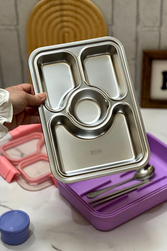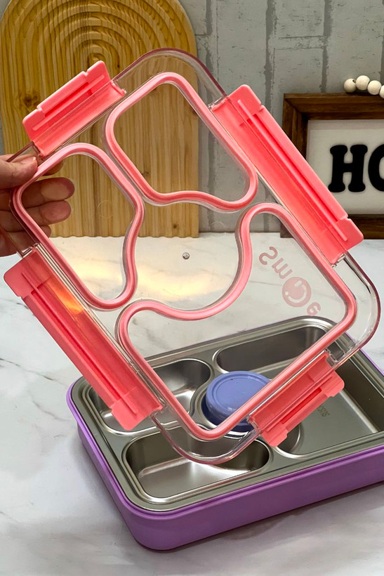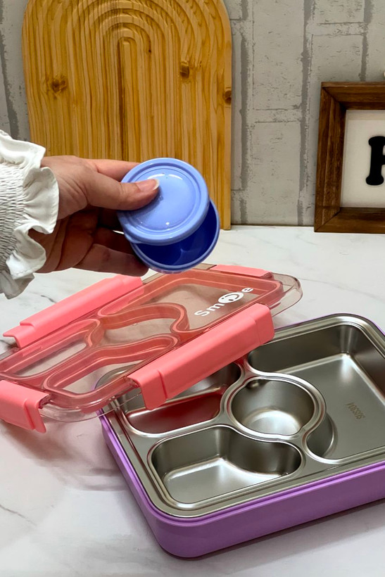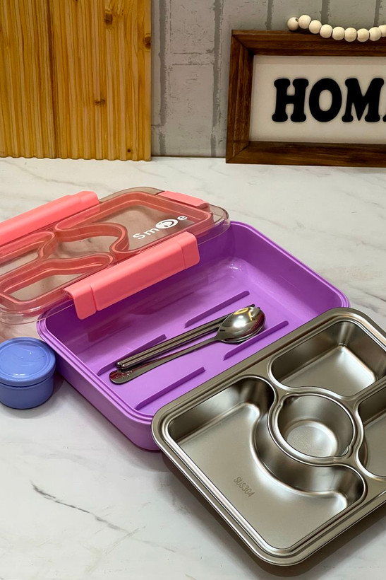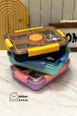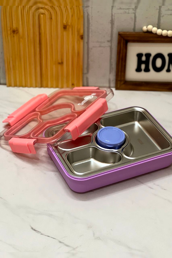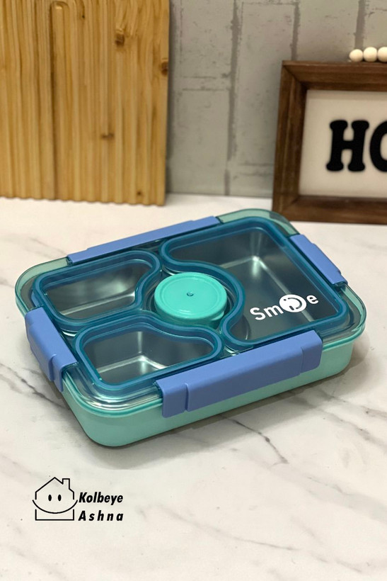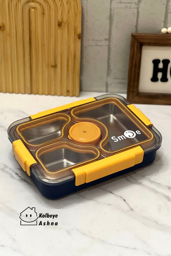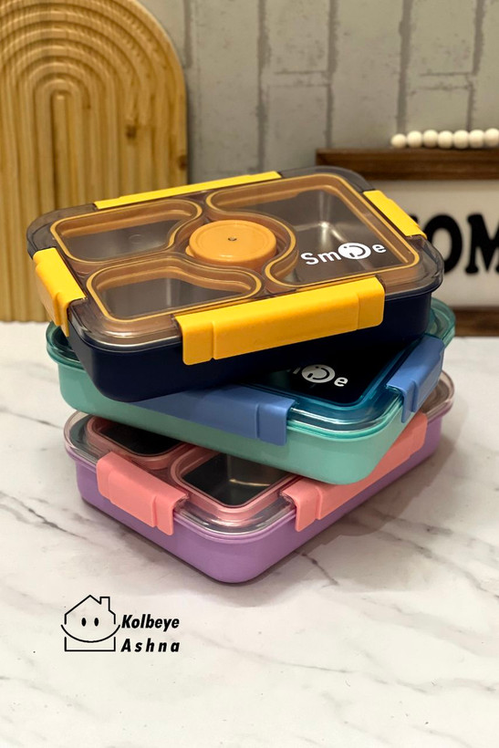 ظرف غذا لانچباکس واشردار برند اسمایل سه قسمتی کاسه دار قاشق و چاپستیک