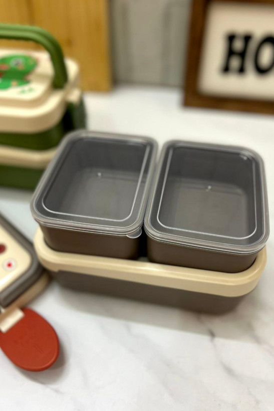 ظرف غذا لانچ باکس حیوانات دوطبقه سه قسمتی