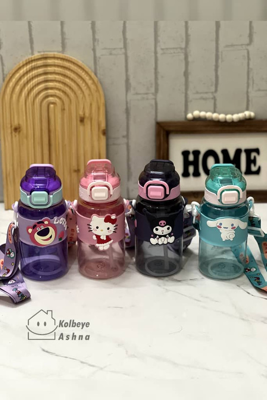 قمقمه کودک کرومی و ملودی دورسیلیکونی نی نوش بند گردنی